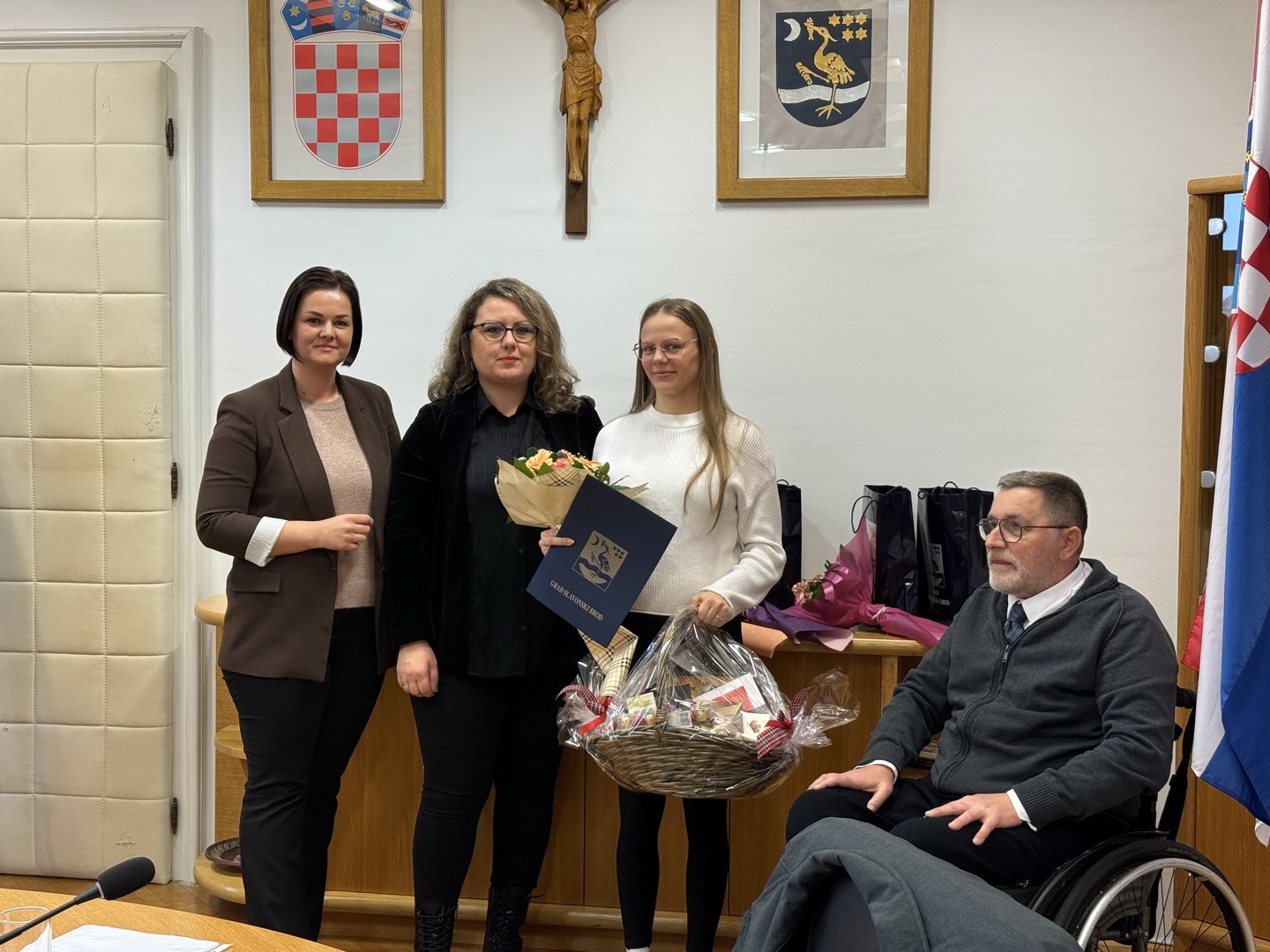 Svečana sjednica Povjerenstva za osobe s invaliditetom Grada Slavonskog Broda održana je jučer u Velikoj vijećnici Gradske uprave. Na sjednici su dodijeljene nagrade za poslodavca godine za osobe s invaliditetom, volontere godine te primjere dobre prakse uključivanja volontera. U ime Grada Slavonskog Broda nagrade je uručila zamjenica gradonačelnika Marina Martić Puača, koja je u svom obraćanju istaknula važnost kontinuiranog ulaganja u inkluziju te zahvalila svim nagrađenima na njihovom nesebičnom doprinosu zajednici.