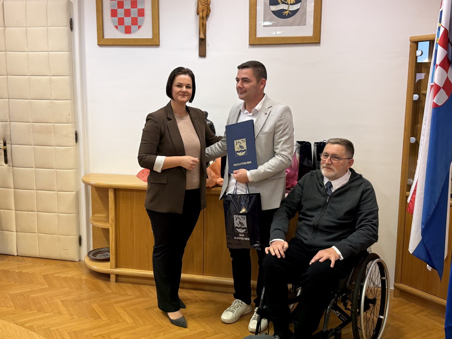Svečana sjednica Povjerenstva za osobe s invaliditetom Grada Slavonskog Broda održana je jučer u Velikoj vijećnici Gradske uprave. Na sjednici su dodijeljene nagrade za poslodavca godine za osobe s invaliditetom, volontere godine te primjere dobre prakse uključivanja volontera. U ime Grada Slavonskog Broda nagrade je uručila zamjenica gradonačelnika Marina Martić Puača, koja je u svom obraćanju istaknula važnost kontinuiranog ulaganja u inkluziju te zahvalila svim nagrađenima na njihovom nesebičnom doprinosu zajednici.