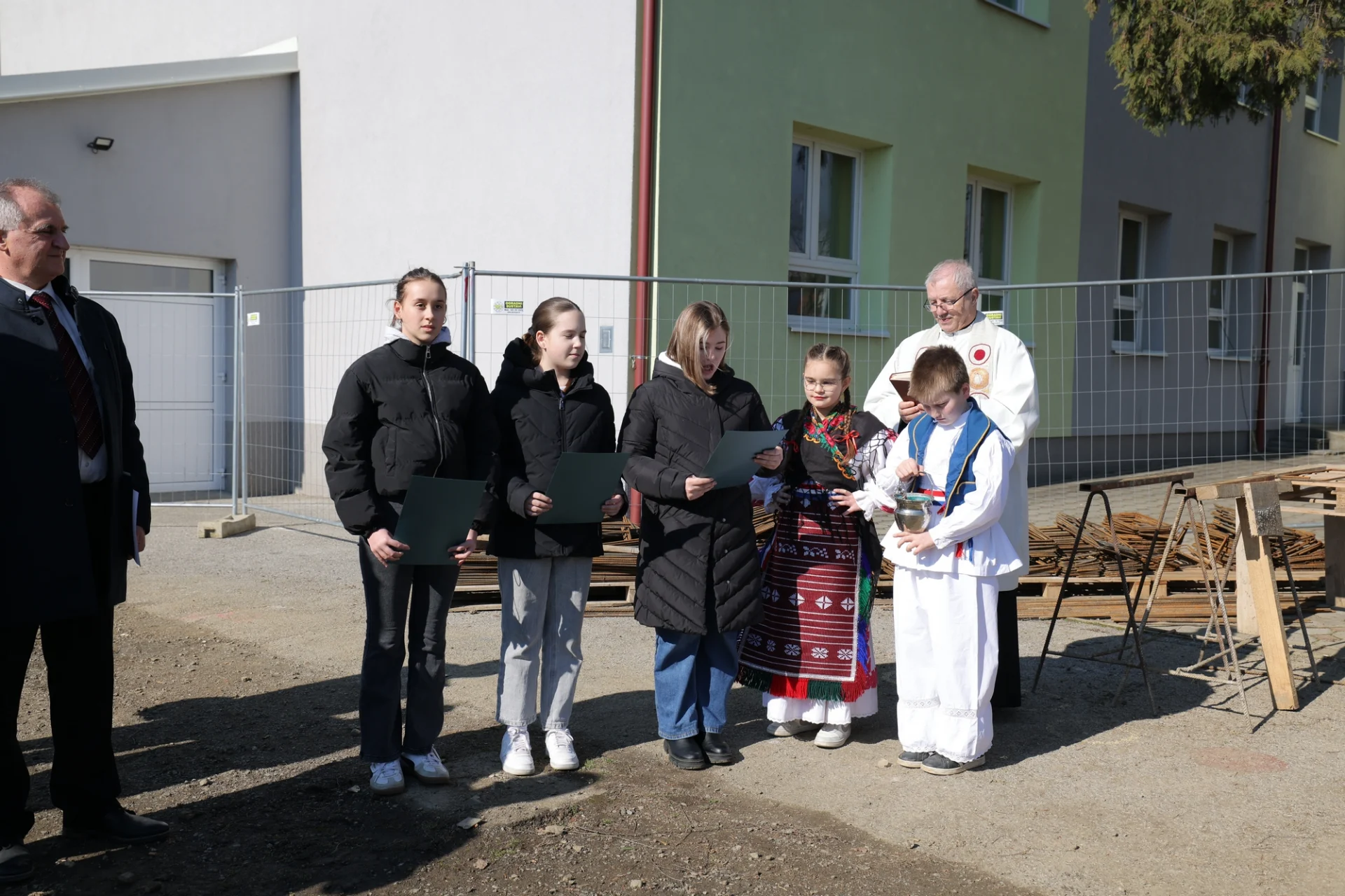Svečanost je dodatno obilježena blagoslovom temelja, koji je predvodio župnik vlč. Josip Bogović, zazvavši Božji blagoslov na izvođače radova, učenike, djelatnike škole i sve koji će koristiti nove prostore.